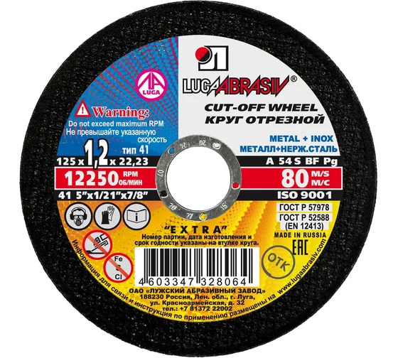 Круг отрезной по металлу 125х1,2х22
